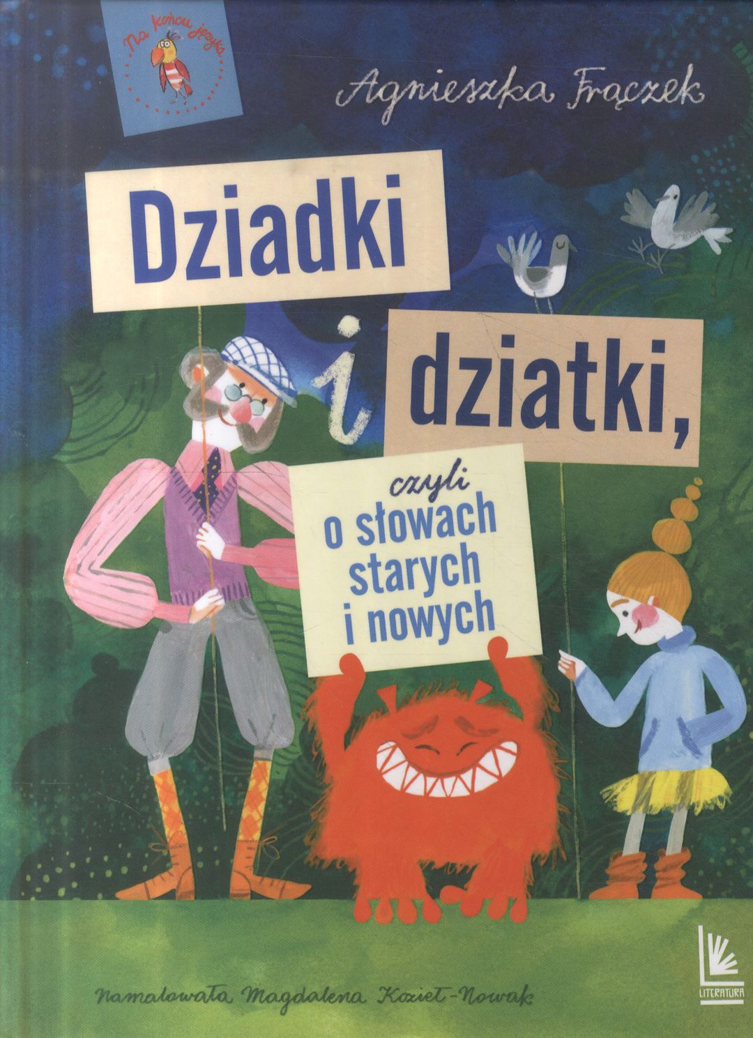"Najnowsza książka Agnieszki Frączek to fascynująca i zabawna zarazem opowieść o słowach starych, już nieco zapomnianych oraz całkiem nowych, które są w naszym języku od niedawna. Mamy więc tu kałamarz, na wyprzódki czy trotuar, a także mejl, esemes czy dron. Każdemu słowu poświęcony jest pomysłowy wiersz, który z powodzeniem może być też wykorzystany jako dyktando ("Zawżdy kiedy wzdłuż i wszerz orzesz rolę, klnąc: - Ożeż!…"). Autorka, laureatka nagrody Ambasador Polszczyzny Literatury Dziecięcej i Młodzieżowej 2019, z maestrią wprowadza nas w tajniki polskiego słownictwa, po raz kolejny dostarczając nam wszystkim (nie tylko tym najmłodszym…) mądrej rozrywki i radości obcowania z językiem." prof. dr hab. Katarzyna Kłosińska, przewodnicząca Rady Języka Polskiego. [okładka]